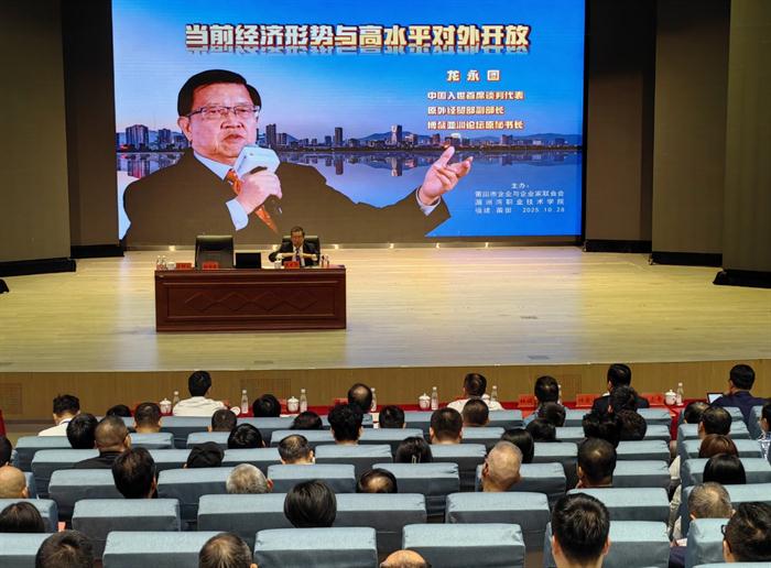 据了解,此次报告会由莆田市企业与企业家联合会、湄洲湾职业技术学院、莆田市商务局主办,旨在引导企业把握正确发展方向,提振发展信心,提升应对错综复杂的国际市场应变能力,助推莆田绿色高质量发展。(吴伟锋 文/图)