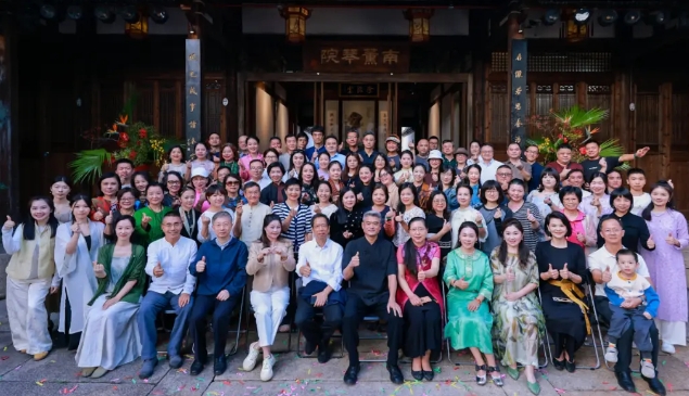 仪式现场,嘉宾们共同为南薰琴院新院揭牌。随着红绸落下,南薰琴院正式开启在福州三坊七巷的传承之旅。