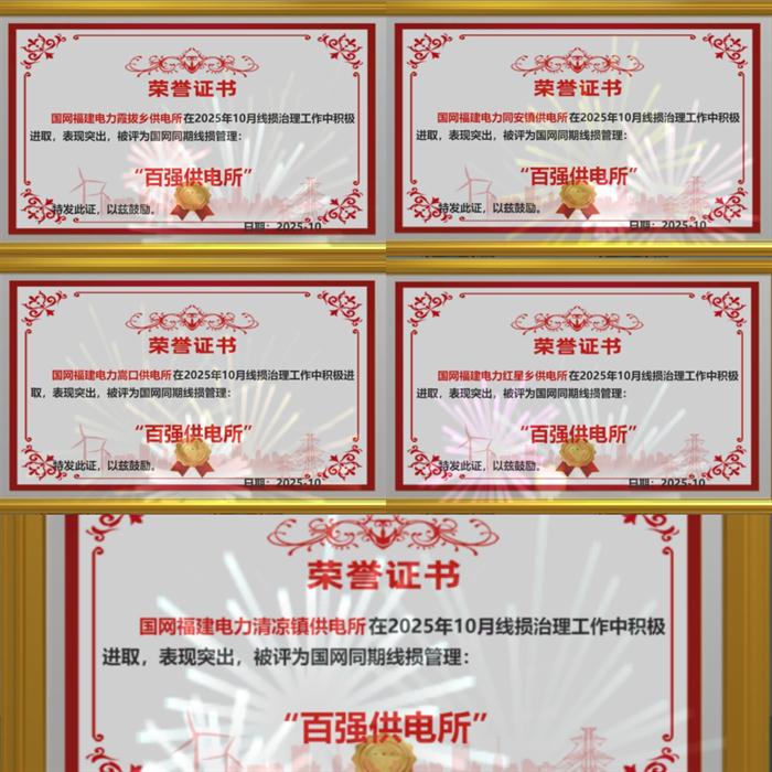 积微致著,功在恒常,国网永泰县供电公司将以此次荣誉为新起点,进一步总结经验,深化专业融合,规范管理流程,落实降损举措,以创建百强所为契机,夯实基础管理,巩固治理成效,不断提升线损精益化管理水平。(林梦露)