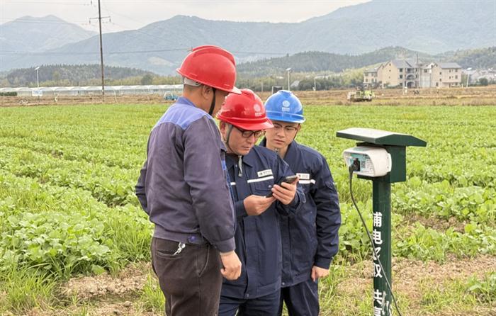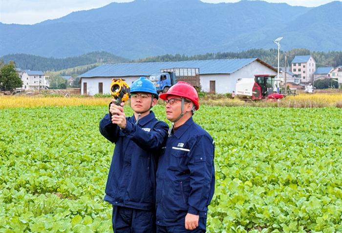 11月24日,在位于浦城县临江镇的万鑫家庭农场,整齐排列的农田上、大棚里,绿油油的菜心、萝卜、油菜等长势喜人。万鑫家庭农场负责人马芳华通过扫码田边的共享充电桩取电,抽水泵通过管道对田间地头蔬菜进行自动喷水。旁边,国网浦城县供电公司临江供电所副所长吕强正在对农场周边线路开展红外测温特巡,确保冬季用电正常。