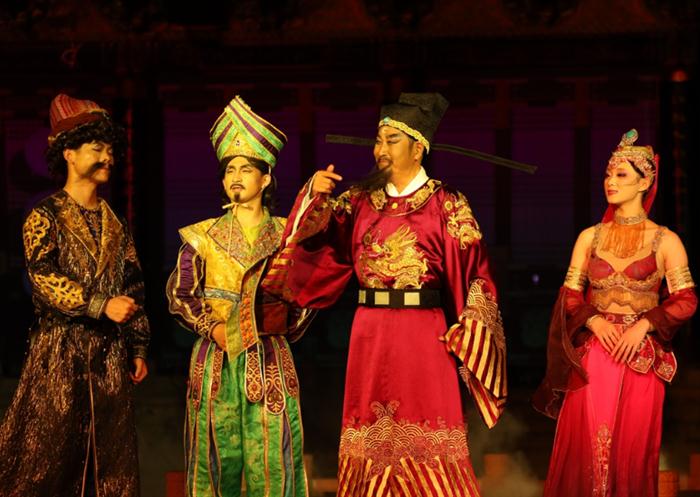 开封府景区沉浸式夜游+演艺项目依托现有资源,通过挖掘“天下首府”的历史底蕴,提炼清晰的文化脉络及核心文化价值,采用新媒体声光电、交互演绎、幻影水舞、舞美机械、艺术造景等创新形式,将历史文化、景观建筑、消费场景等进行有机融合,串联活化景区资源,打造“五大沉浸式演艺+多处拍照打卡点”的游园式情境夜游,形成虚实交互的幻戏体验,开发集故事性、艺术性和互动性等为一体的沉浸式体验定制产品,给游客带来出其不意的游玩效果与感官沉浸,让游客沿着开封府的历史脉络,穿越情境,展开一段大宋盛世的千年之旅: