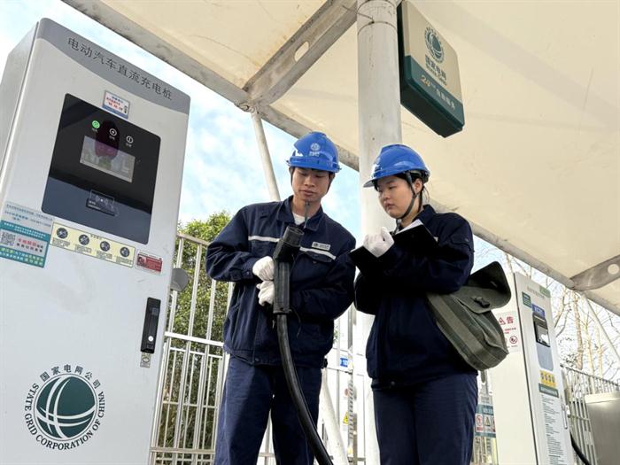为全力保障新能源车主春运期间出行无忧。2月11日,国网建瓯市供电公司组织工作人员正在丰乐高速服务区,对服务区内的充电桩进行“全面体检”,为春运期间绿色出行筑牢电力保障防线。