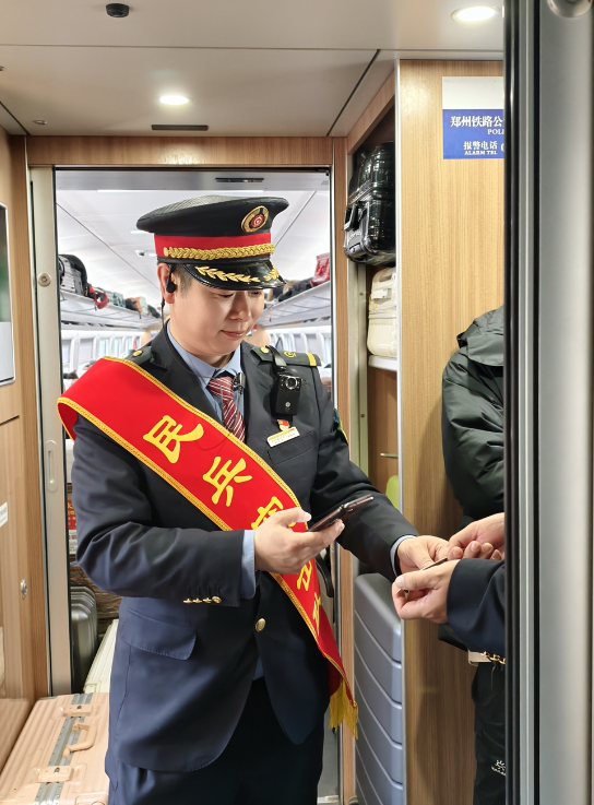 2026年春运工作已经接近尾声,但是旅客出行依然持续攀升。特别是节后客流集中、乘务与补票工作压力增大,郑州客运段高铁一队京银线路根据乘务班组乘务工作繁忙的情况,充分发挥退伍军人组成的民兵队伍的先锋模范作用,在3月5日学雷锋纪念日,组成G353次列车党员民兵突击队,利用个人休息时间支援兄弟班组,化身临时乘务助手,全力支援列车补票、旅客服务与车厢秩序维护工作,守护旅客出行温馨路,用实际行动诠释“平时服务、急时应急”的民兵使命。