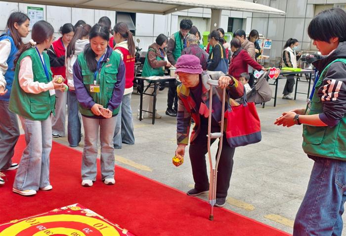 活动现场同步开展五大趣味互动与便民服务环节:一孝心投沙包·投福纳安,以投掷祈福祝愿长者平安顺遂、福寿绵长;二健康踏步·蒙眼闯关,在趣味运动中舒展身心、乐享陪伴;三拗九问答·传孝承德,围绕拗九节来历、习俗与孝德故事展开问答,重温民俗文化、感悟孝德内涵;四孝心打卡·定格温情,用镜头留存温馨瞬间,让孝德理念深入人心;五便民服务·孝暖安康,提供免费量血压、健康咨询、肩颈按摩、以及剪头发和小家电维修等便民服务,聚焦老人日常需求,用实际行动守护长者身心;同时福州市花木有限责任公司现场赠送特色蝴蝶兰花苗,让长者们把春意与孝心一同带回家。现场人气高涨,吸引了不少辖区居民、人才家属、侨眷等驻足参与,共赴孝暖之约。