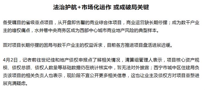 时至今日,西宁水井巷中央商务区的运营盘活工作依旧步履维艰。