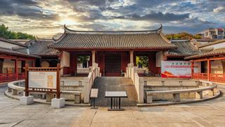 福州文庙现存建筑占地面积7552平方米,建筑面积约4000平方米,建筑坐北朝南,南北依次排列二进院落,采用传统的中轴线左右对称方式。