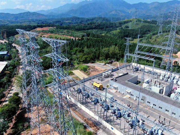 国网松溪县供电公司和国网政和县供电公司工作人员正在220千伏九龙变电站进行110千伏线路T接作业 何文明摄