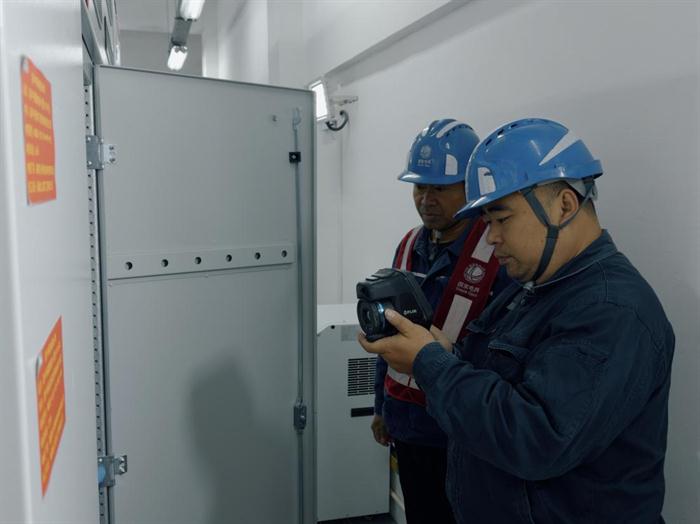 运维人员正在对配电站房内设备进行红外测温工作 蔡政摄