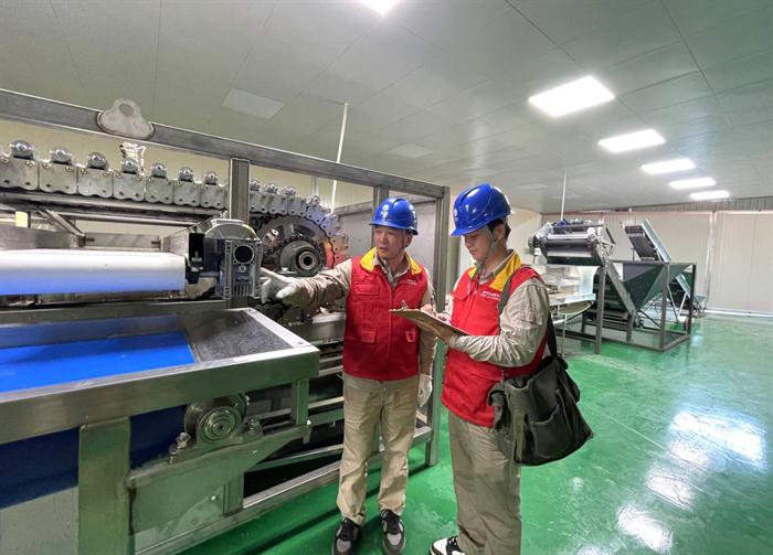 走进繁忙的生产车间,自动化加工流水线正高速运转,新鲜玉米经过清洗、蒸煮、真空包装等工序,变成了畅销市场的优质产品。黄俊忠重点对车间配电柜、电机、加热设备等关键用电设施进行细致检测,逐一排查线路接头、开关触点等易发热部位的安全隐患。经过3个多小时的全面排查,工作人员共整改线路松动、接地不良等隐患4处,并为工厂制定了个性化用电优化方案,有效提升设备运行效率。
