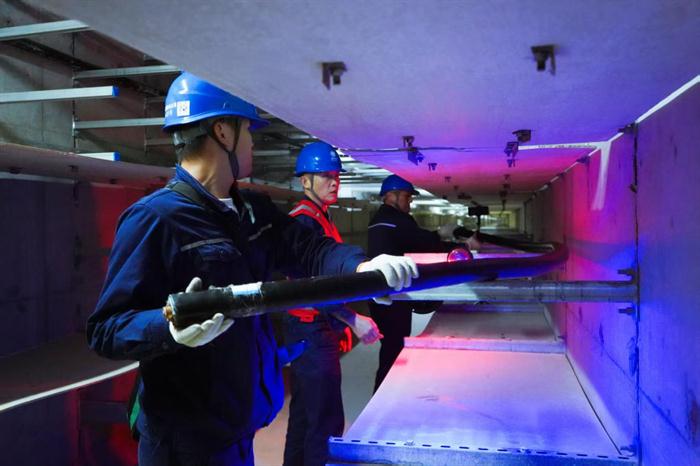 接到险情后,国网平潭供电公司按照“先隔离、后抢修”的原则,同步启动电力应急抢修预案,抢修队伍携带专业工具快速抵达现场,在与消防救援队伍确认安全条件后,进入综合管廊电缆故障点,开展电缆绝缘测试、破损修复、接头处理等标准化作业,全过程严格遵循安全操作规程,确保抢修质量与人员安全。