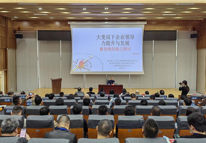新加坡南洋理工大学公共管理研究院创院院长、新中经贸科技文教交流协会会长吴伟教授现场作专题分享。他围绕《大变局下企业领导力提升与发展》《产教协同,战略破局:新形势下企业出海战略》两大主题展开,立足“人力资本是经济社会发展核心支撑”的关键命题,指出领导力提升是激活人才价值的核心抓手,拆解管理逻辑为实操路径,并融入新加坡人才培养先进经验,为校企协同赋能提供指引。同时,他聚焦企业出海痛点,剖析行业现状与问题,提出优化服务方案,明确职业教育对接产业需求、助力企业出海的功能定位与实践路径。