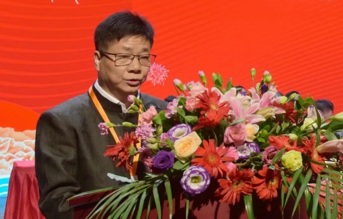 本次年会承办单位、吉祥九宝文化传播(莆田)有限公司创始人陈玉彬在大会上发言。他围绕妈祖九宝吉祥物的传承脉络、发展现状与文化意义进行分享,强调妈祖九宝在凝聚两岸情感、扎根民间传承中的重要作用,呼吁各界共同努力,弘扬妈祖文化,为促进两岸交流、传承中华文明贡献力量。