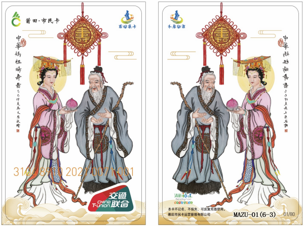 为推动妈祖文化贴近大众、走向世界,莆田集卡协会徐建新先生精心策划设计并发行妈祖交联卡。这张全国一卡通以文化为内核,化身承载妈祖精神的微型名片,讲述新时代下的妈祖故事,让千年文脉随卡片走遍五洲四海。
