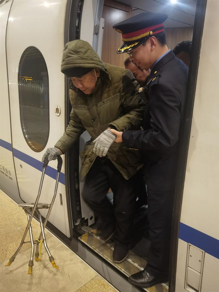 春运返程高峰,郑州客运段 G2393次列车长贴心服务老年旅客,在站台主动搀扶、引导重点旅客安全下车,用细致周到的服务守护旅客归途,让春运出行更有温度。吴冠瑶 图